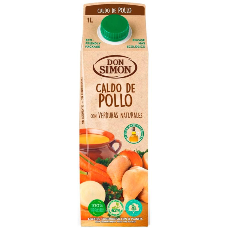 Caldo Don Simón 100% natural de pollo con verduras. Elaborado con productos naturales sin colorantes ni conservantes. Nuestra exclusiva receta le otorga un sabor único y garantiza el éxito en la mesa.