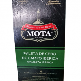 Producido por: Alimentación Cerdo Ibérico de Bellota Pureza 50% Ibérico Curación 3 años mínimo Peso aprox. 7.5 kg