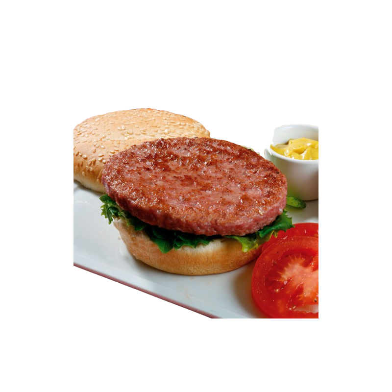 13.08 €/Kg IVA INCLUIDO Unidad de venta: La caja Peso de la hamburguesa: 180gr aprox. Caja: 24 hamburguesas aprox. Caja: De 4.300 Kg aprox.