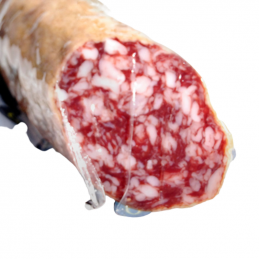 El salchichón ibérico de bellota es elaborado con la distinguida calidad Blázquez, y pertenece a la elegante línea de embutidos ibéricos Admiración. Posee un toque de pimienta dotado de un intenso aroma . Al corte, se aprecia una amplia gama de tonalidades entre grises y rojizas que reflejan una estructura carnosa que dará lugar a una experiencia gustativa sensacional en nuestro paladar.