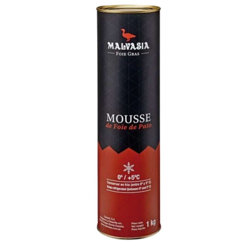 El mousse de foie de pato 1 kg es una pasta (emulsión) a base de hígado graso de pato triturado, sometido a tratamiento de calor y presión para obtener una semiconserva.