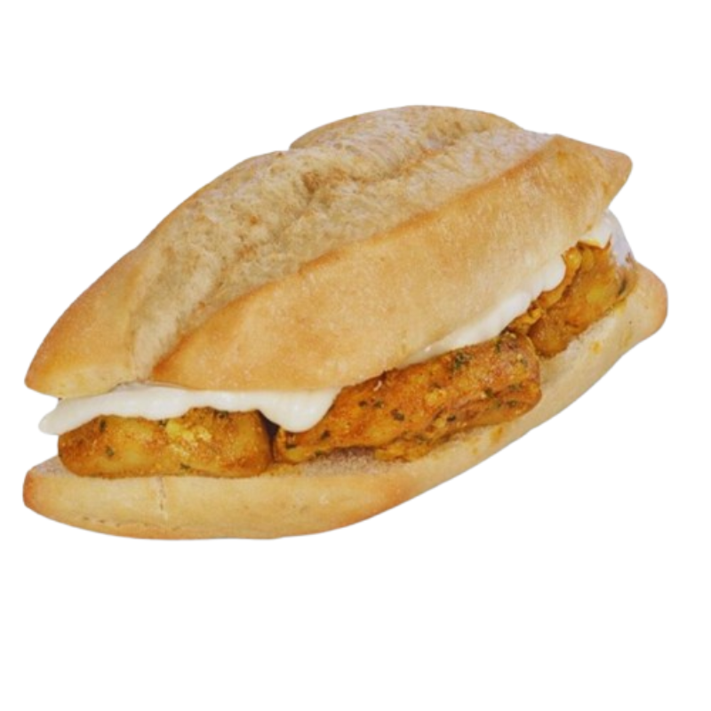 El Montapincho presenta un jugoso pinchito de pollo marinado, acompañado de una suave y cremosa salsa alioli, creando una combinación deliciosa y equilibrada que resalta los sabores frescos y especiados del pollo.