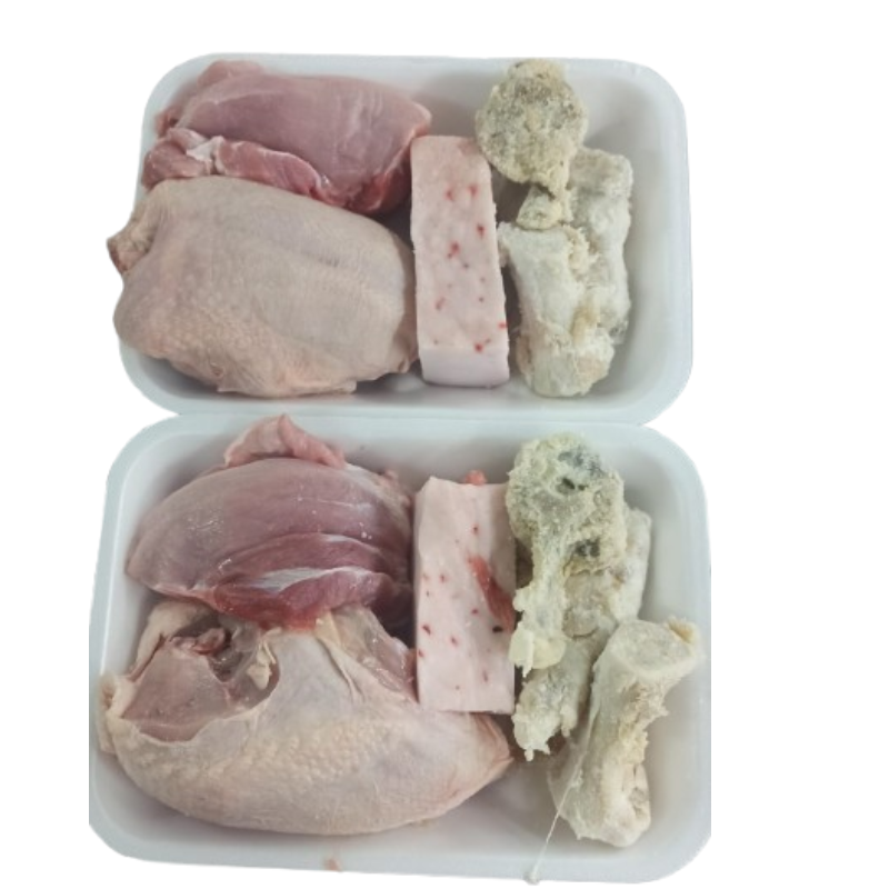 Compuesto: Pechuga De Pollo, Magro de Cerdo, Tocino Fresco, costilla salada, espinazo, corteza salada, hueso blanco salado