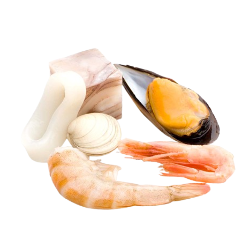 Ingredientes:Almeja del Pacífico cocida (25%) (Meretrix lyrata), Mejillón cocido sin concha (20%) (Mytilus chilensis y/o Mytilus Galloprovincialis. Puede contener sal), Anilla de Pota argentina (15) (Pota (Illex argentinus), agua, sal, estabilizante (E- 452) y corr...