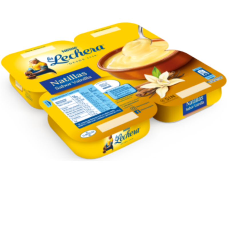 INGREDIENTES: LECHE desnatada pasteurizada (72%), azúcar, agua, NATA, almidón, LECHE desnatada en polvo, gelificantes (carragenanos, goma xantana), aromas, sal, colorante (carotenos).