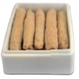 ROLLITOS DE BACON Y GAMBAS Peso rollito: 30-35gr aprox Unidades rollitos por bolsa: 30 unidades aprox. Precio Venta: Bolsa de 1kg Unidad de Venta: Bolsa de 1kg Caja de 3 bolsas de 1kg Peso de la Caja: 3 kg