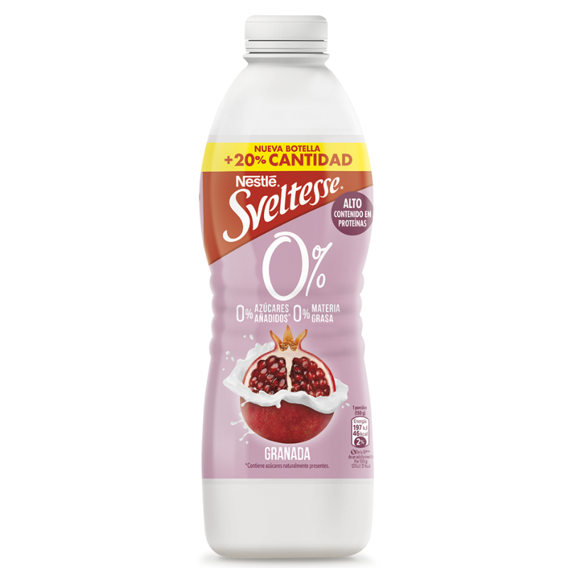 INGREDIENTES: LECHE desnatada pasteurizada (95%), puré de granada (2%), LECHE desnatada en polvo, zumo de limón a partir de concentrado, aroma natural de granada, aroma natural, concentrado de zanahoria, edulcorantes (acesulfamo K, sucralosa), fermentos LÁCTEOS.