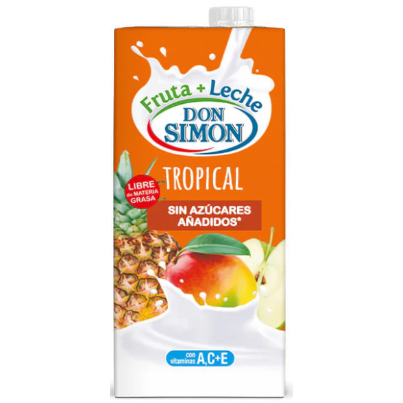 Fruta+leche Tropical Don Simón. Elaborado con piña, uva, mango, manzana y leche desnatada. Sin azúcares añadidos y rico en vitaminas A,C y E.